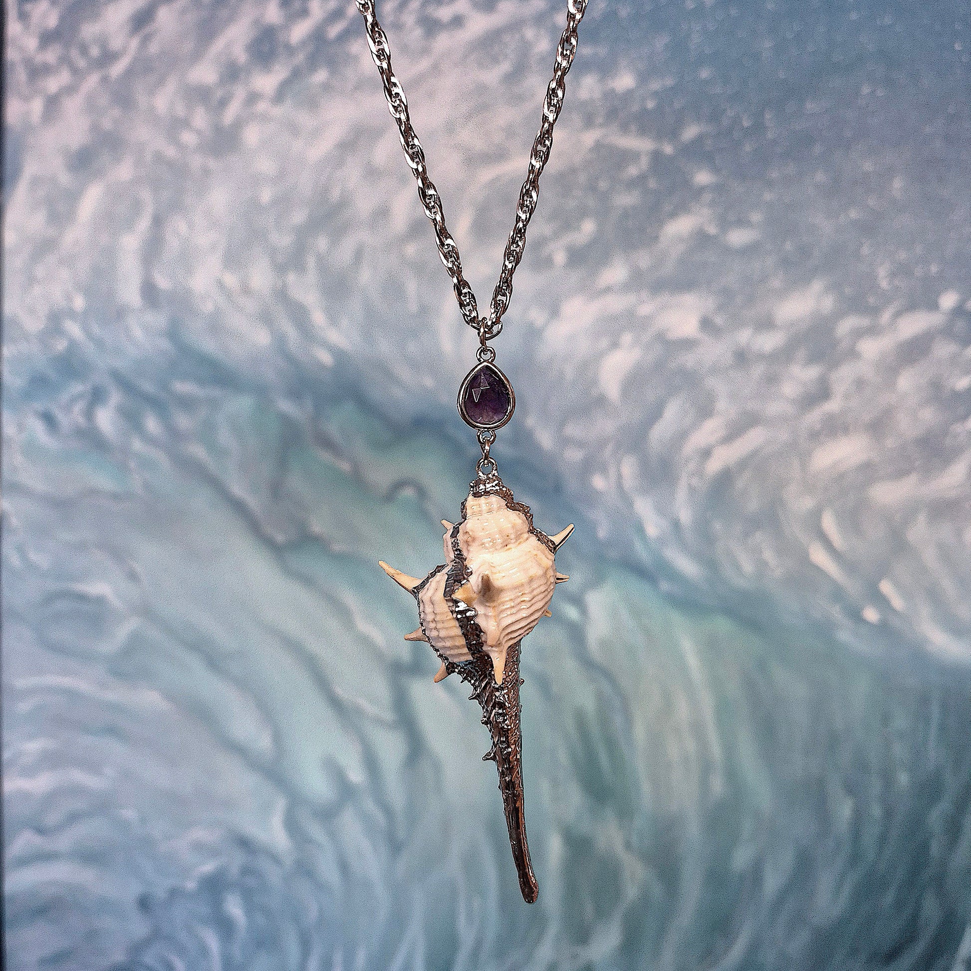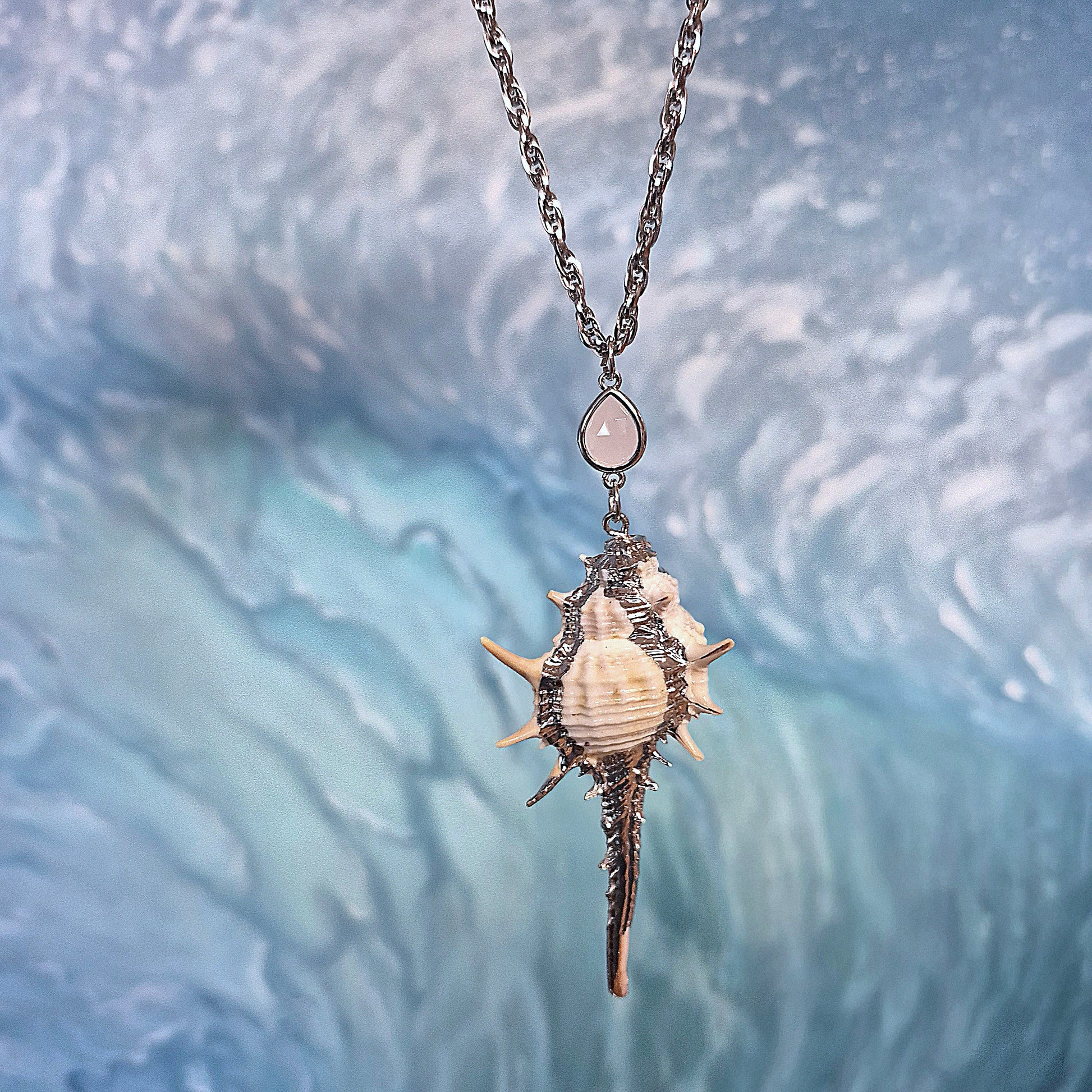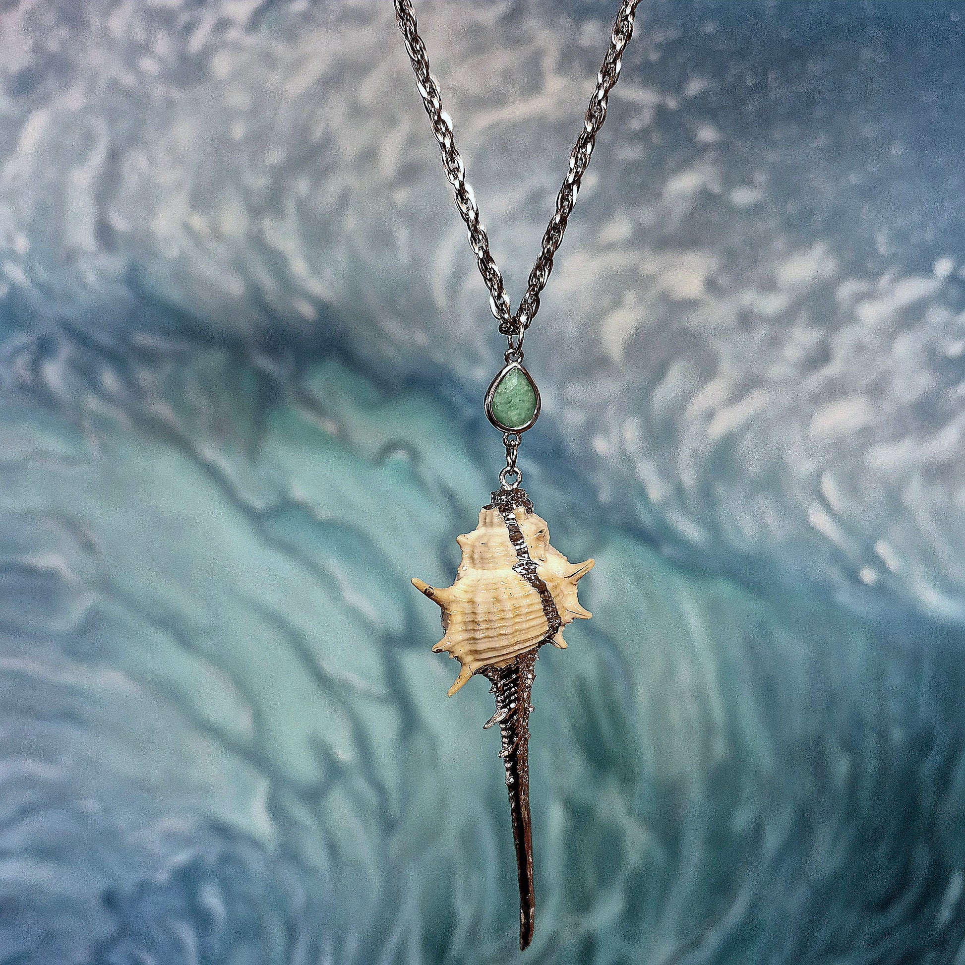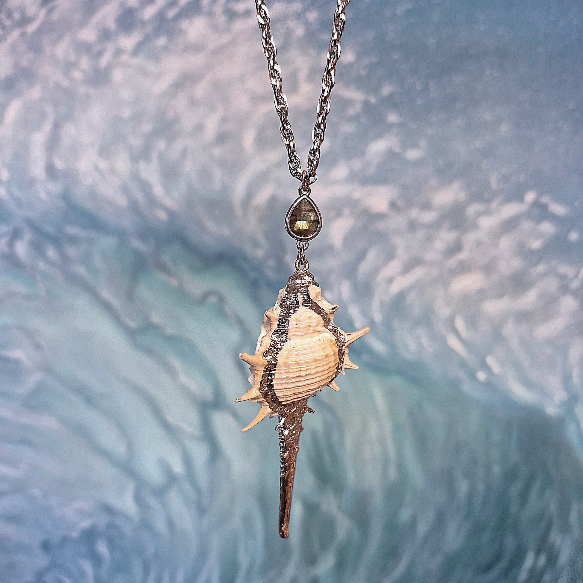 Pendentif en coquillage, tiré de ma collection Le chant des Marées. Véritable coquillage sertit de feuille d'argent monté sur une chaine en acier inoxydable.