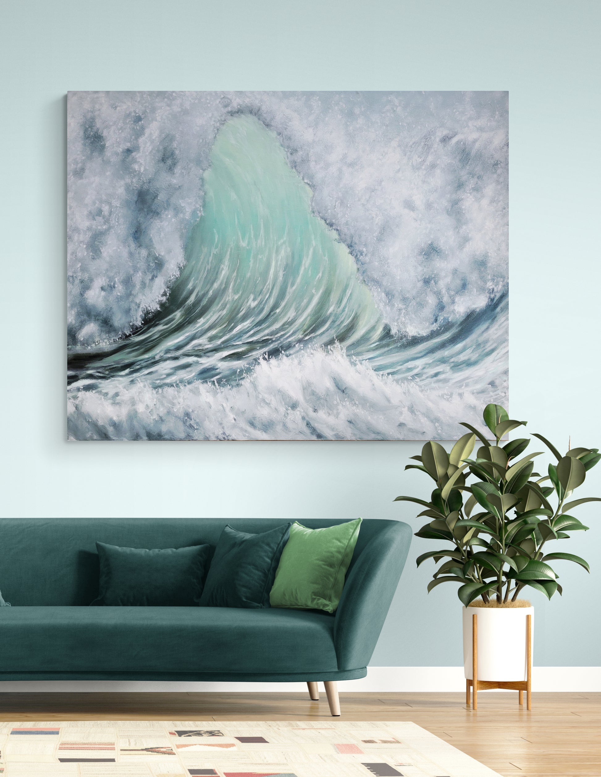 Jâavais envie de crĂ©er des teintes lumineuses qui me feraient vibrer et je me suis beaucoup amusĂ©e Ă crĂ©er les tons sarcelle que jâai mis Ă lâhonneur dans mon Ćuvre.Â