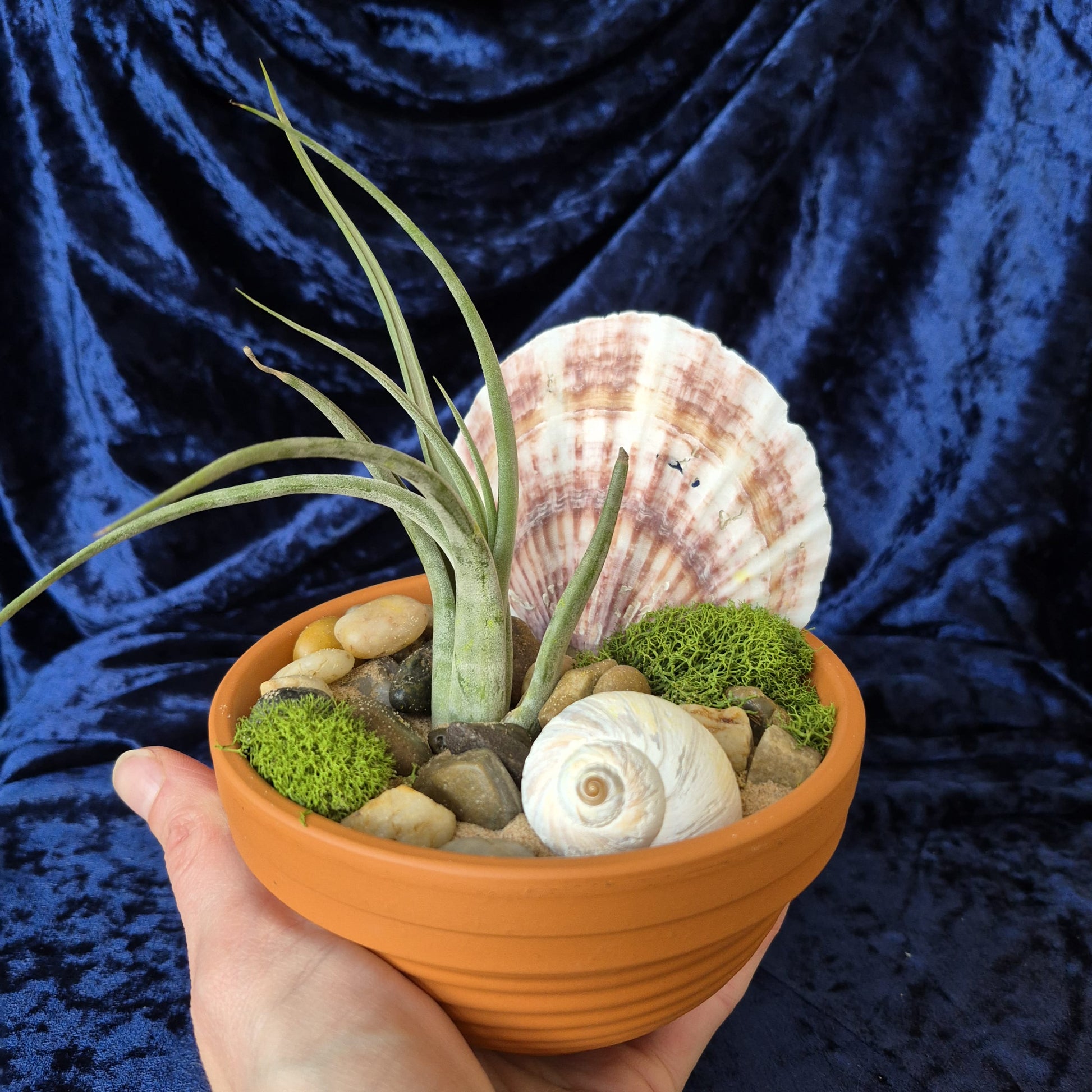 - Les coquillages, le sable et les plantes qui composent les arrangements sont véritables. Chaque arrangement est donc unique. La taille, la couleur et les particularités de chaque création varie d'un modèle à l'autre.