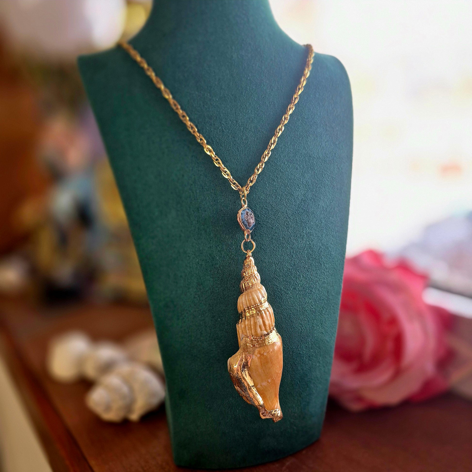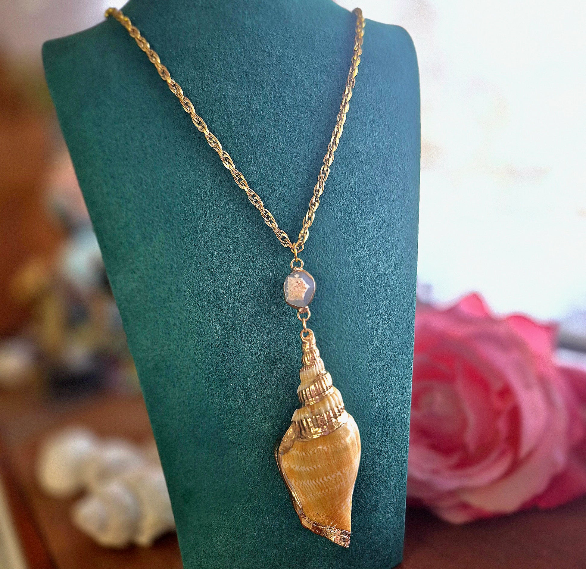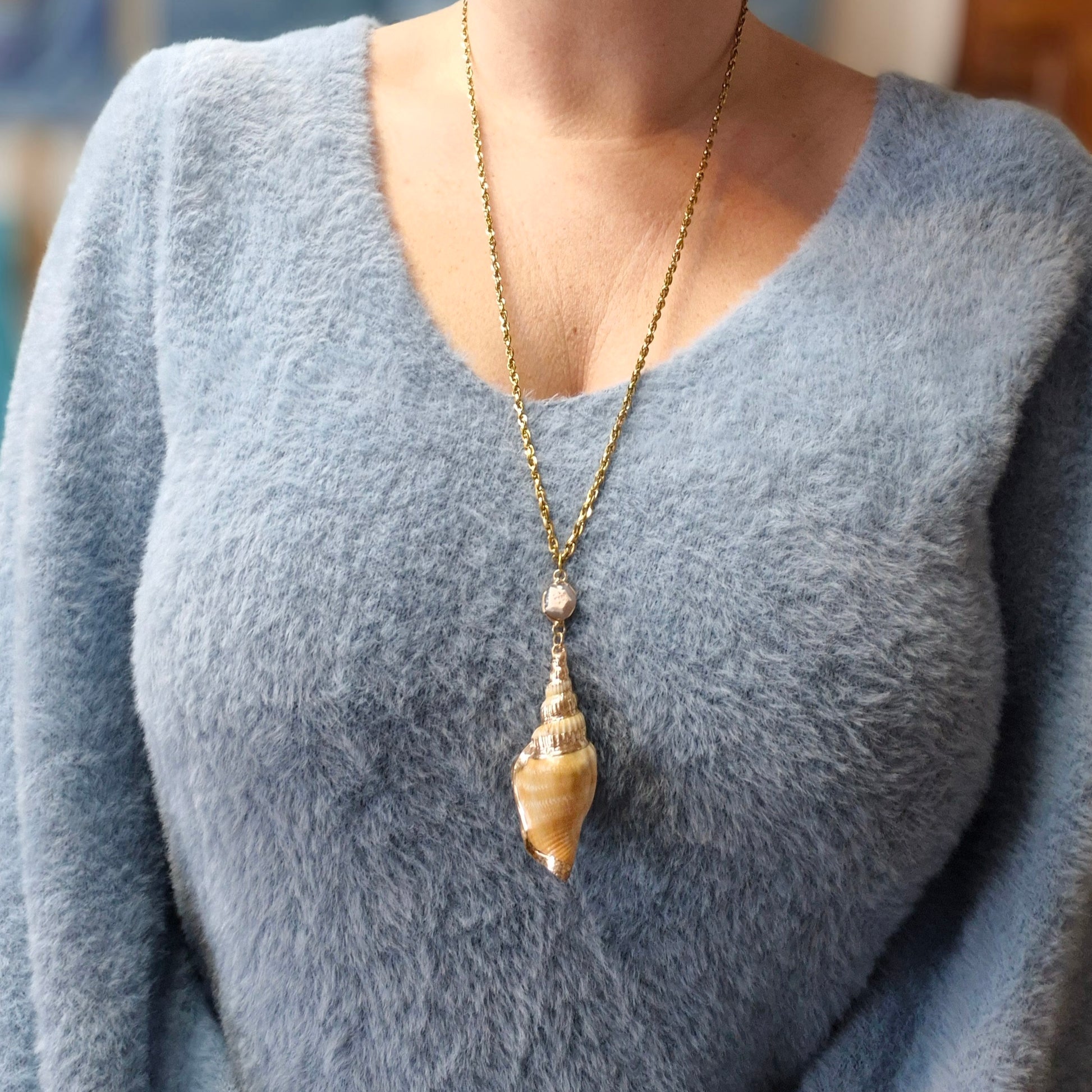 Pendentif en coquillage, tiré de ma collection Le chant des Marées. Véritable coquillage sertit de feuille d'or monté sur une chaine en acier inoxydable.