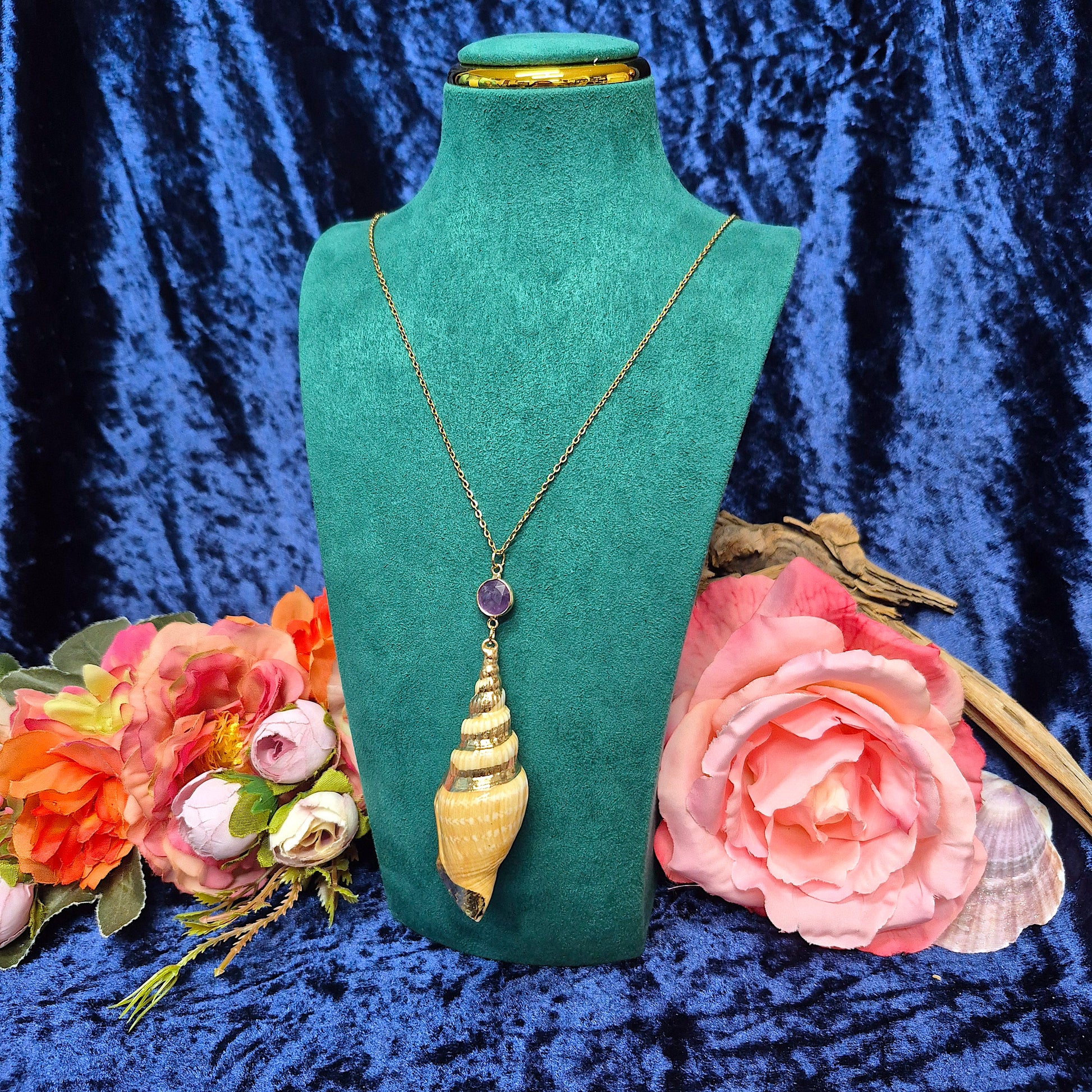 Pendentif en coquillage, tiré de ma collection Le chant des Marées. Véritable coquillage sertit de feuille d'or monté sur une chaine en acier inoxydable.